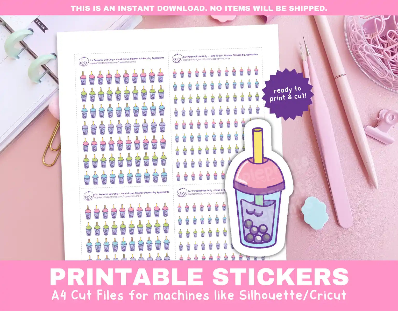 Boba Tea Planner Icons Functional Stickers for Cricut & Silhouette Print and Cut
