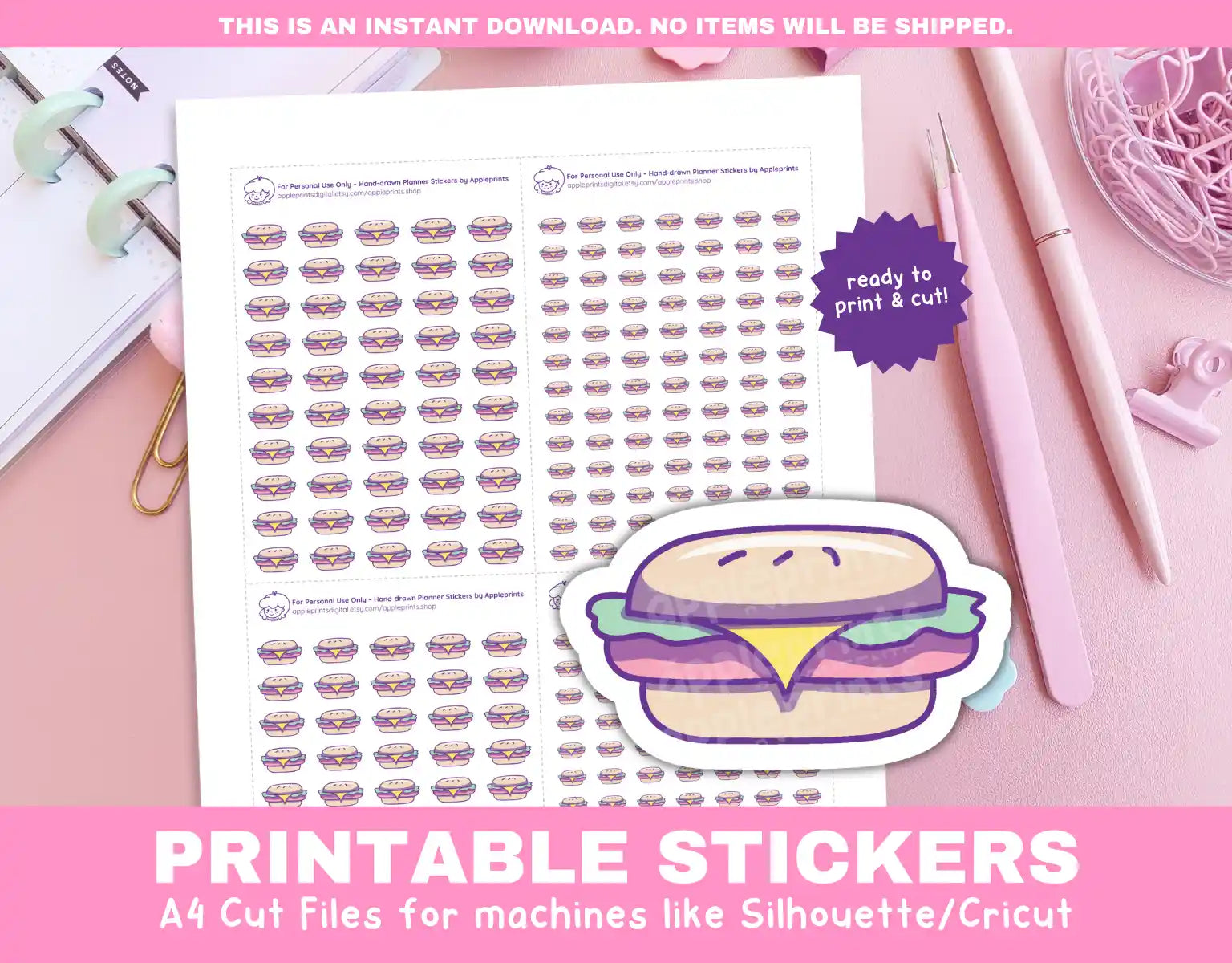 Burger Planner Icons Functional Stickers for Cricut & Silhouette Print and Cut