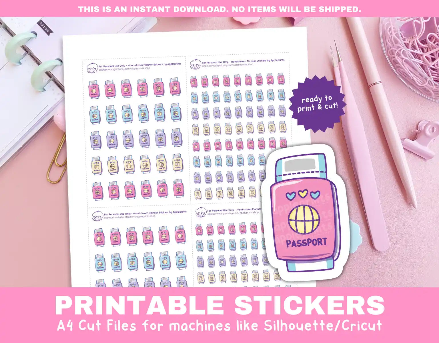 Passport, Travel Planner Icons Functional Stickers for Cricut & Silhouette Print and Cut