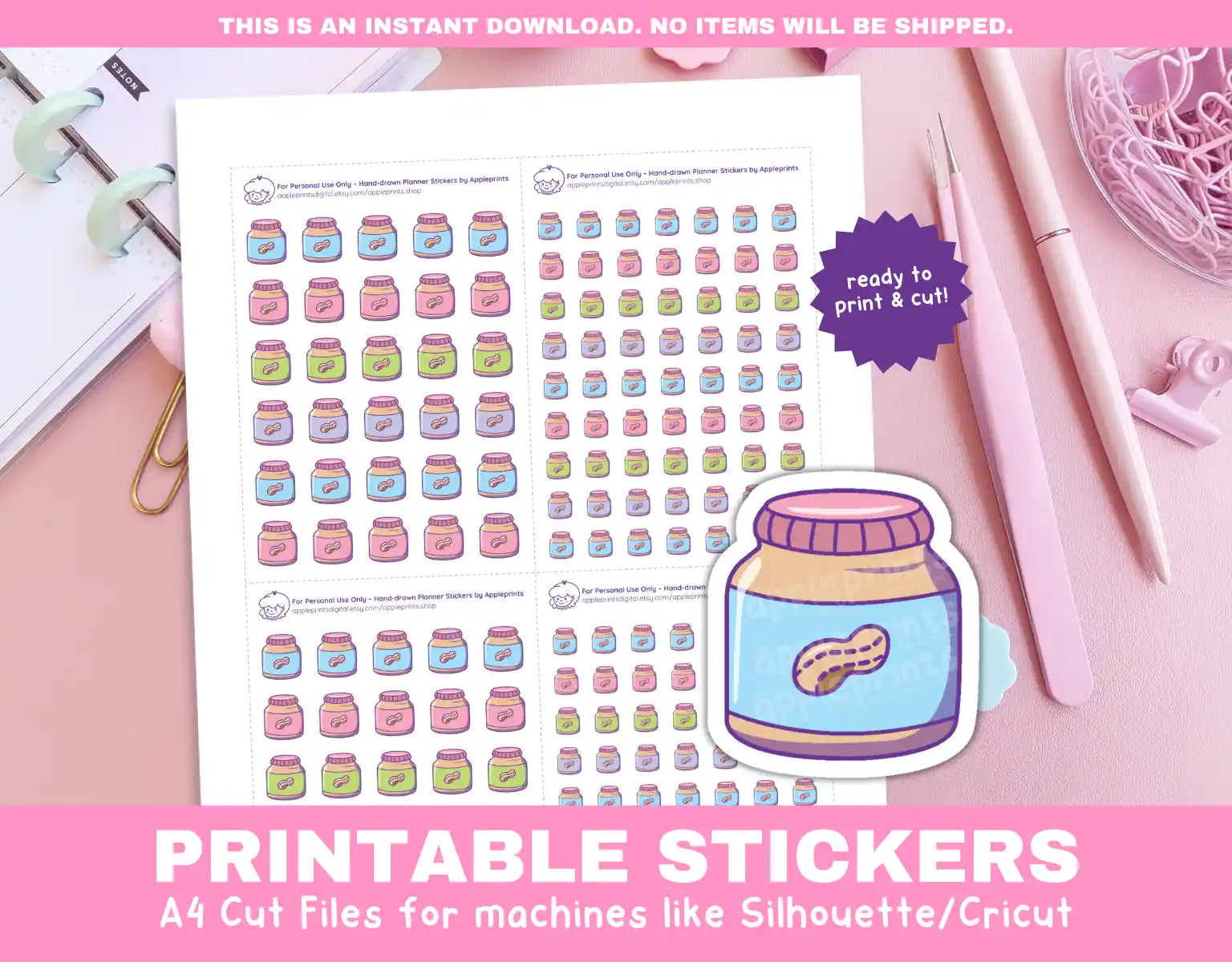 Peanut Butter Planner Icons Functional Stickers for Cricut & Silhouette Print and Cut