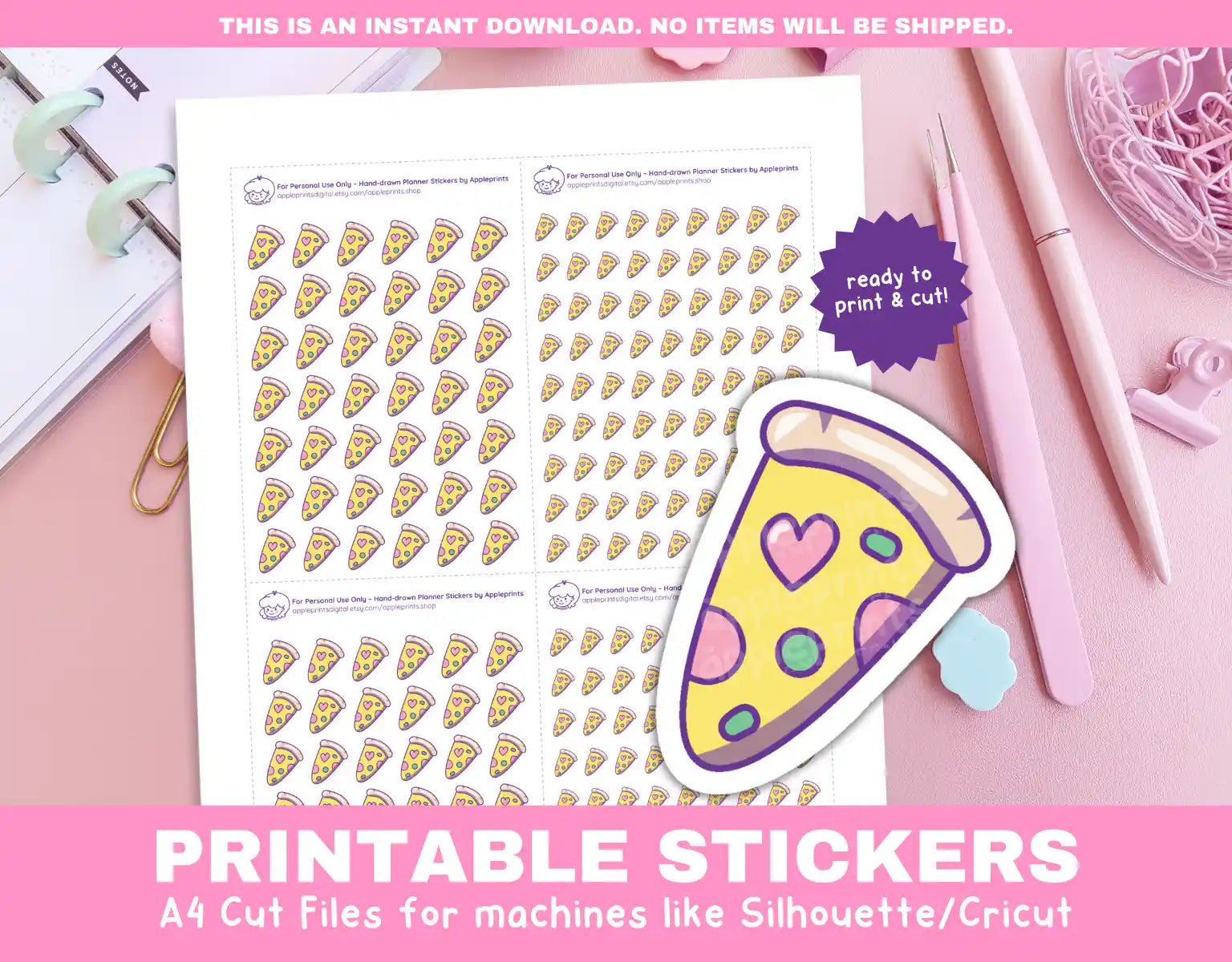 Pizza Slice Planner Icons Functional Stickers for Cricut & Silhouette Print and Cut