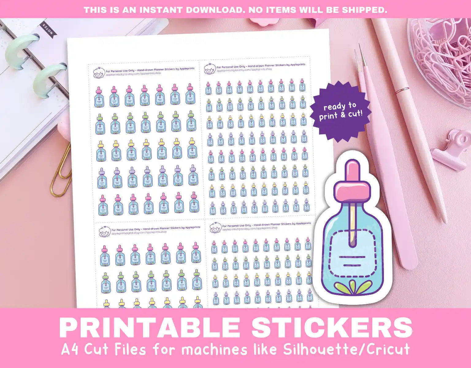 Skincare Serum Planner Icons Functional Stickers for Cricut & Silhouette Print and Cut